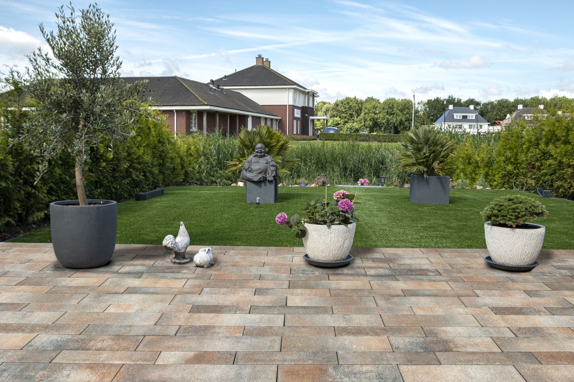 ELITON SUPREME LINEA – Glinsterend ruw De ELITON SUPREME LINEA stenen zijn de enige in onze betoncollecties die gestraald zijn. Het resultaat laat zich zien en voelen; een aangenaam ruw oppervlak dat weet te overtuigen in combinatie met een discreet facet en een unieke kleurechtheid. Geruwd oppervlak. Waterafstotend door dubbele impregnering. Lange levensduur en in 8 cm dikte waar ook met de auto op kan worden gereden.